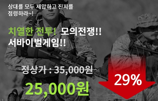 내린천 서바이벌게임 3게임 150발 정상가 35,000 >> 할인가 25,000원