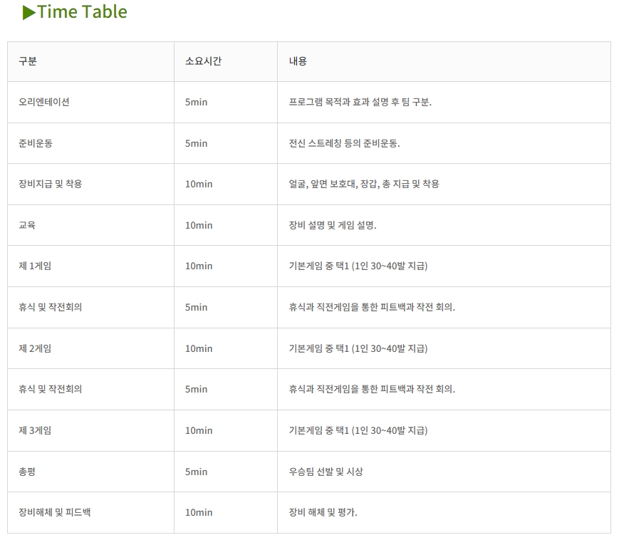 10인 이상시 서바이벌게임 가능합니다