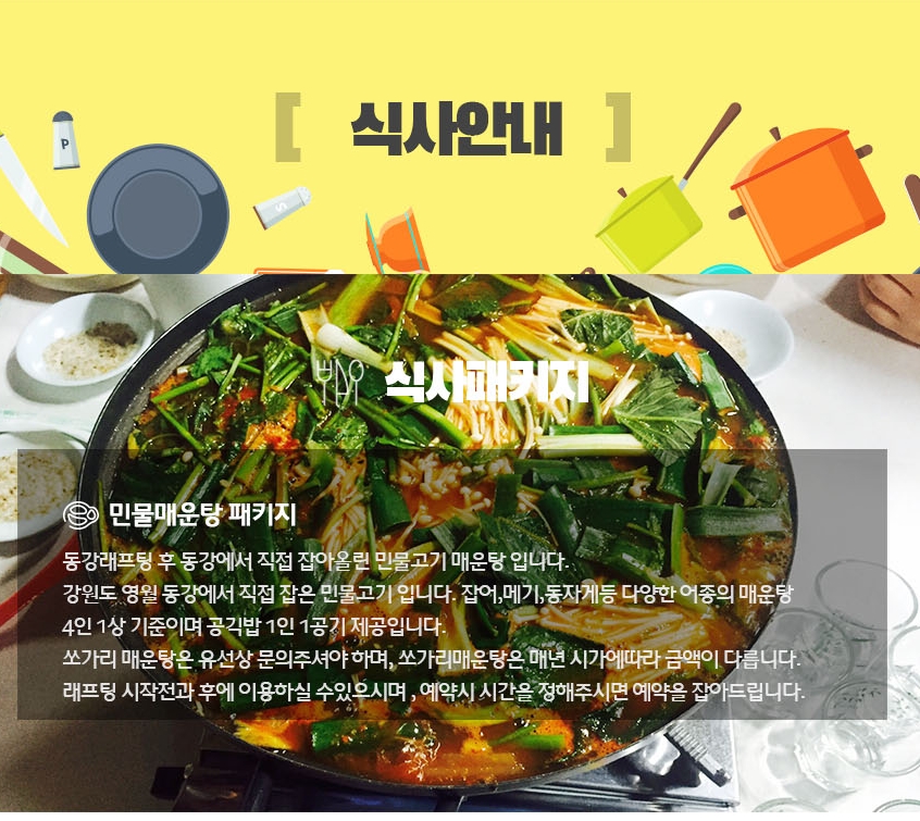 당일래프팅+민물매운탕 패키지 당일래프팅+민물매운탕 패키지 50,000원